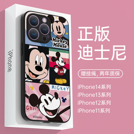 米奇适用苹果14手机壳iPhone15promax高级感16plus可爱女ip14全包卡通17pro迪士尼小羊皮xsmax新款13超薄趣味
