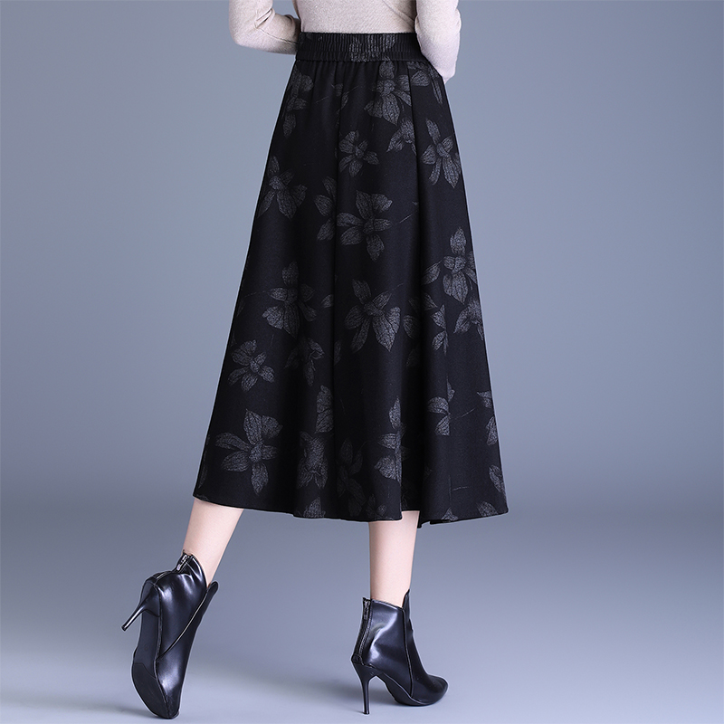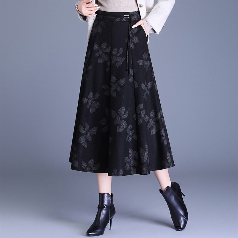 印花羊毛呢八片裙大摆半身裙女秋冬中长款高腰显瘦遮胯伞裙a字裙