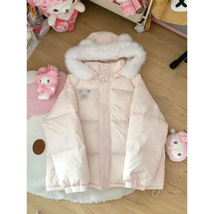 冬日季气质暖洋洋熊猫毛领可爱耳朵连帽棉服甜美宽松休闲棉衣外套