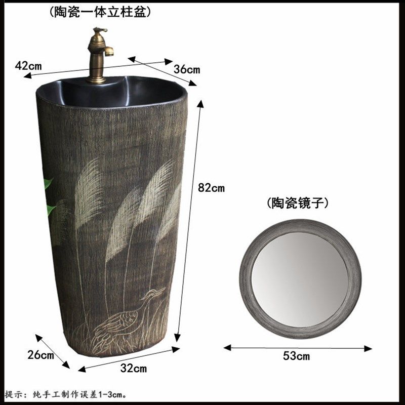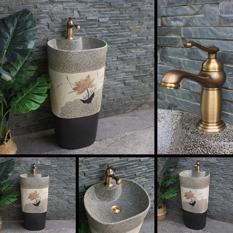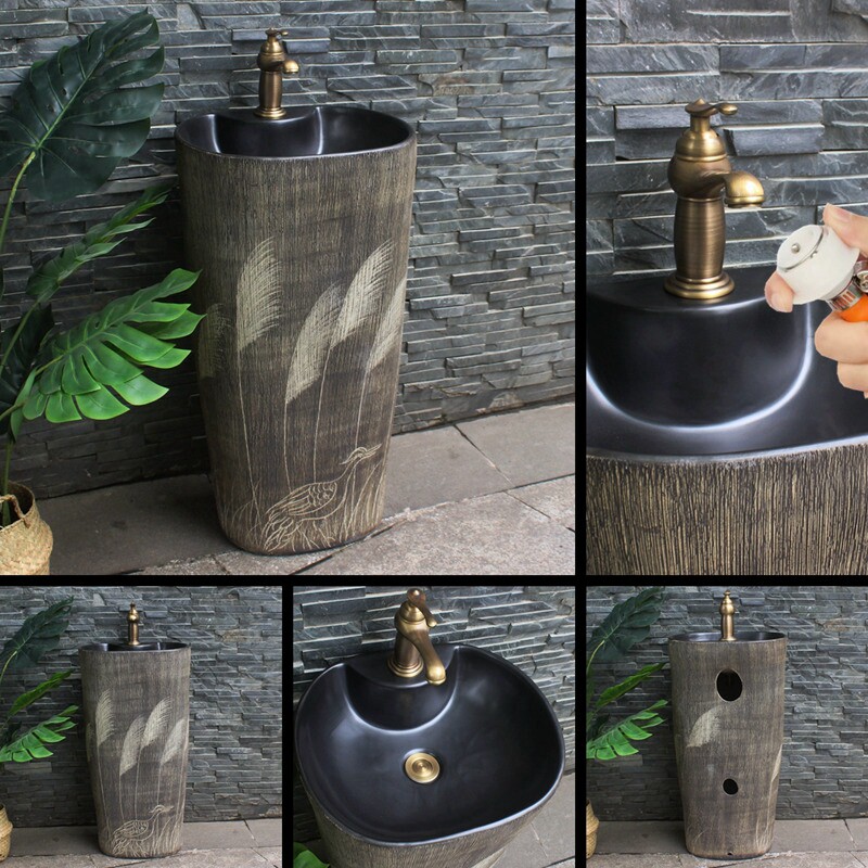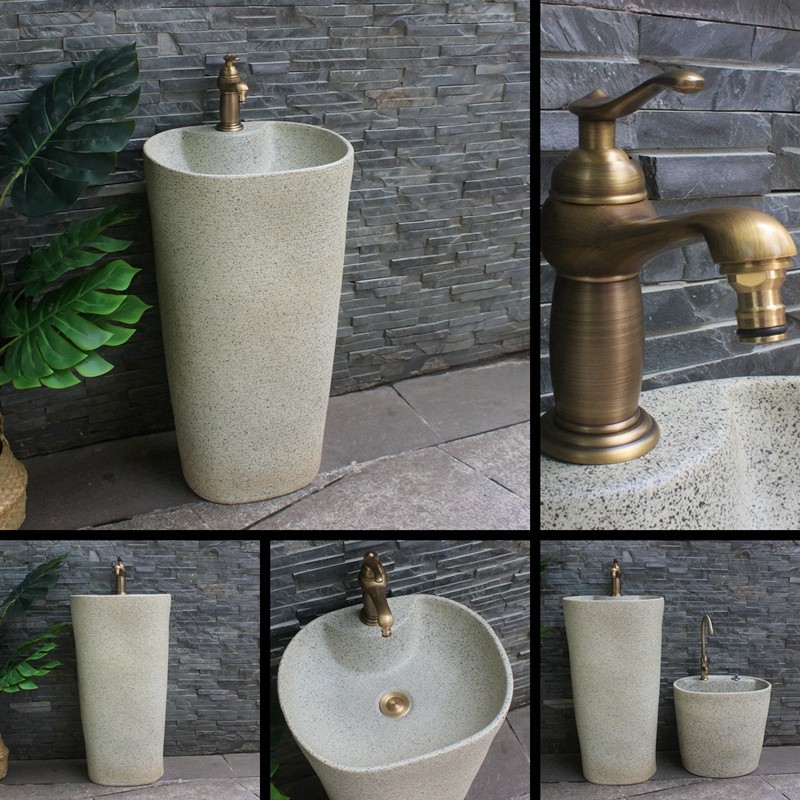 户外立柱盆一体立柱式洗脸盆阳台落地洗手池卫生间洗面盆复古庭院