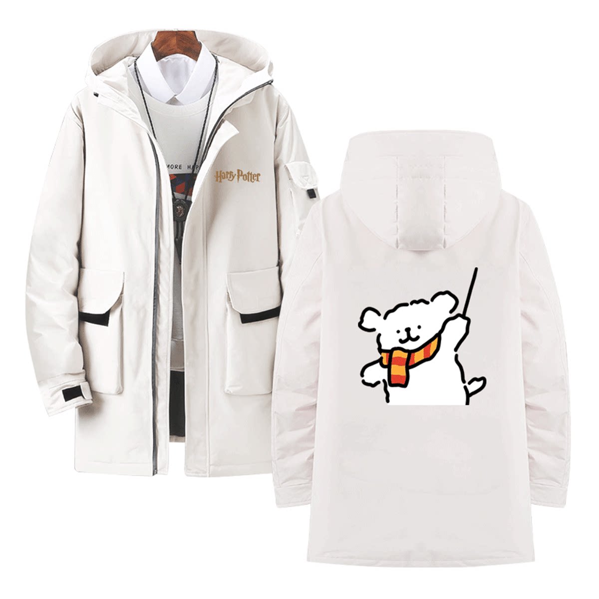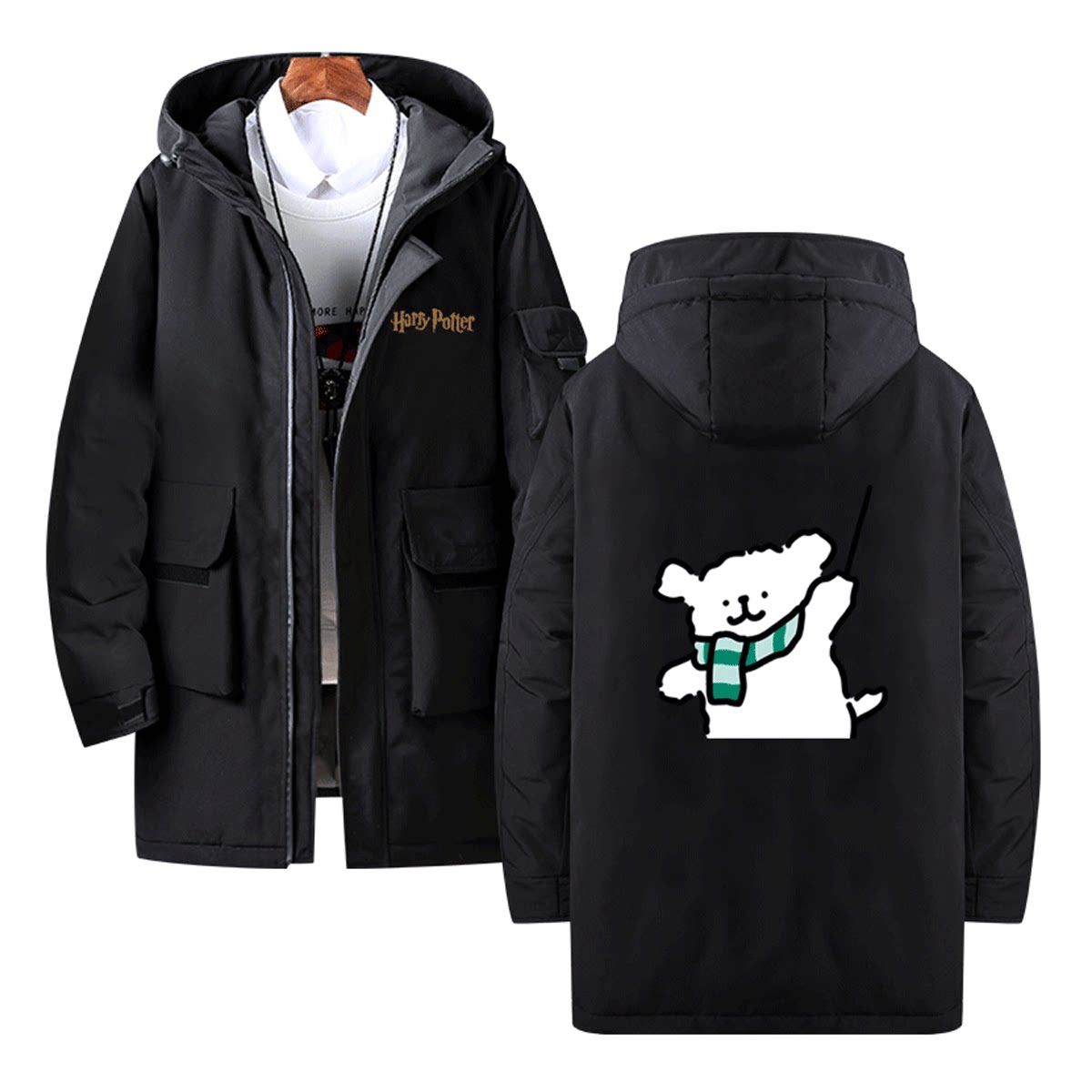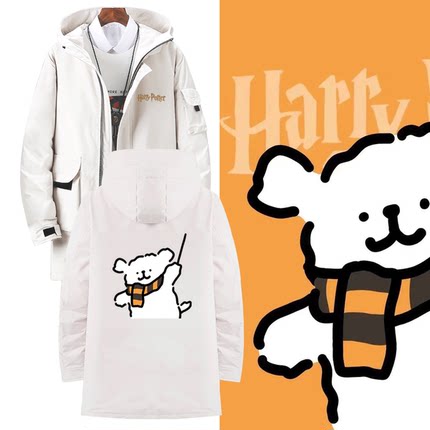 联名哈利波特线条小狗2024新款休闲美式外套中长款连帽定制羽绒服