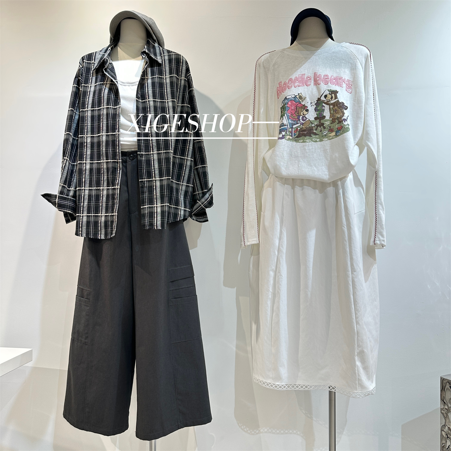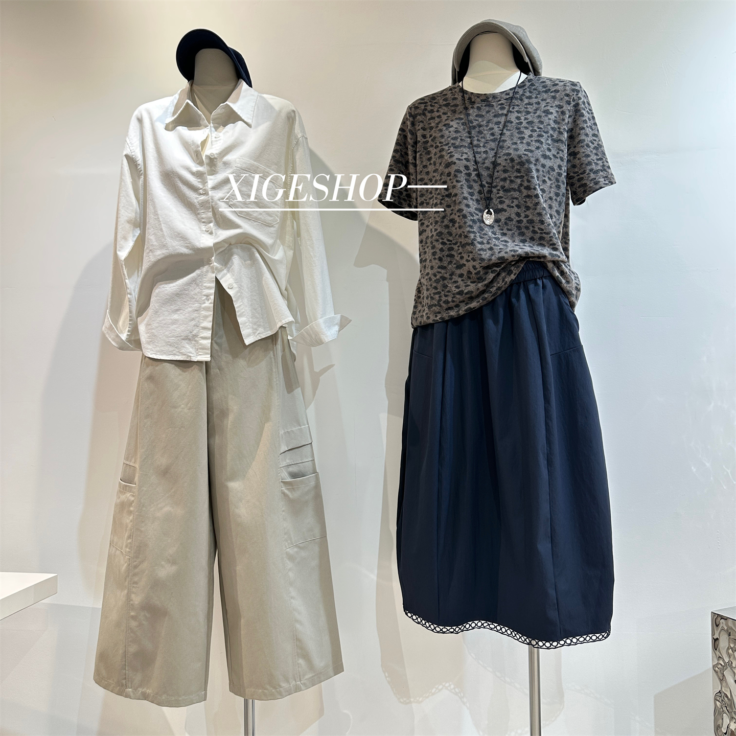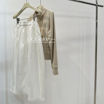 韩系高腰花苞伞裙女秋季新款拼接镂空刺绣花边设计立体剪裁中长裙