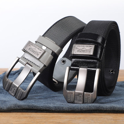 帆布腰带男士新款潮流加厚皮带休闲百搭加长布带大码针扣牛仔裤带