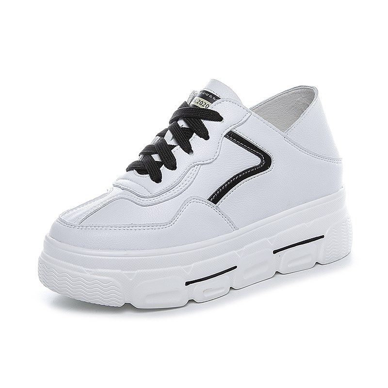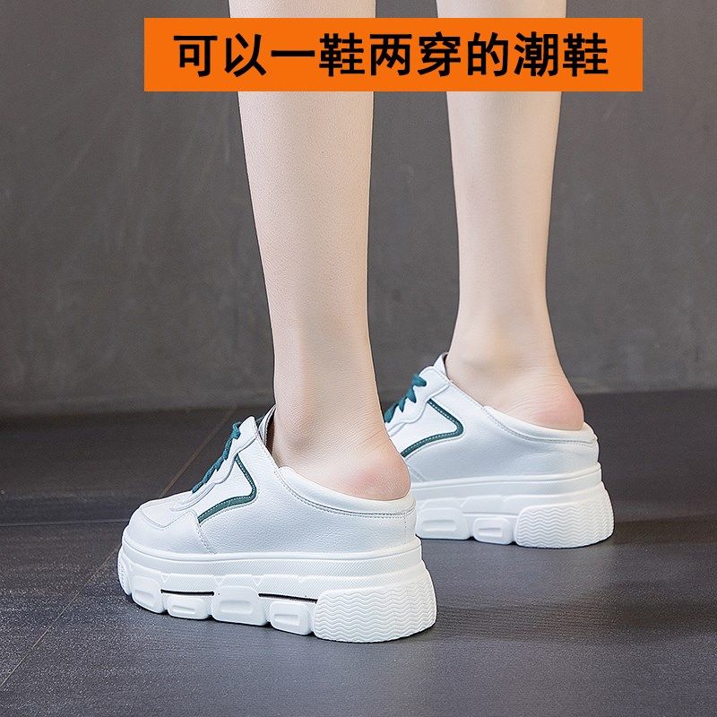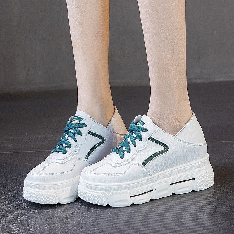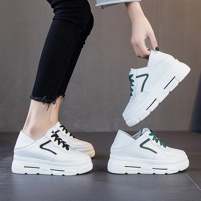 真皮内增高小白鞋女春秋新款松糕厚底休闲运动鞋百搭网红小码单鞋