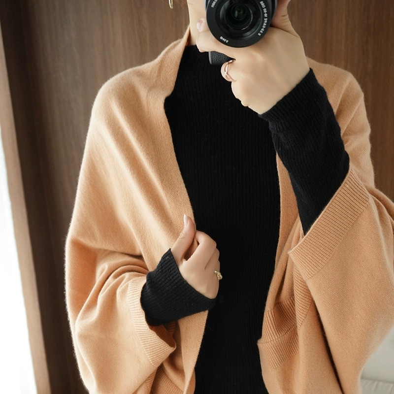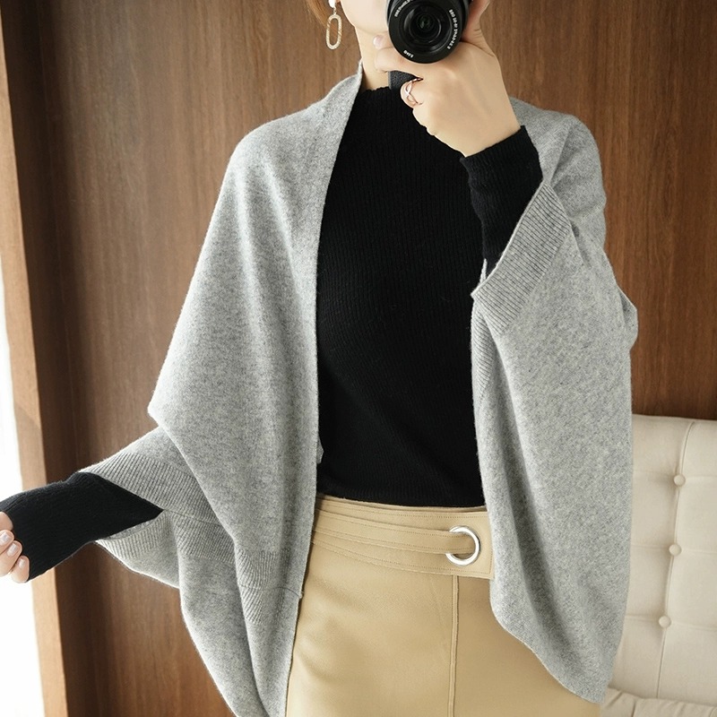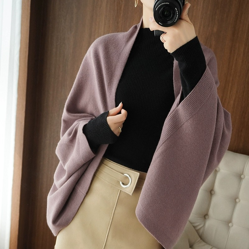 秋冬新款开衫披肩马甲小众宽松多用旗袍百外搭坎肩围巾羊毛针织衫