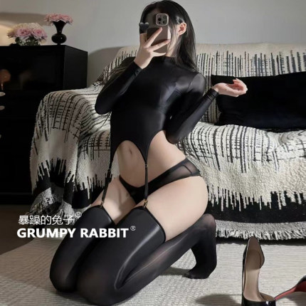 暴躁的兔子「手感暴徒」性感蕾丝油亮连体衣手感丝滑吊带丝袜长筒