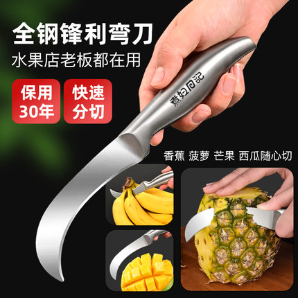 不锈钢水果刀弯刀锋利切割香蕉西瓜芒果菠萝蜜凤梨水果店专用小刀