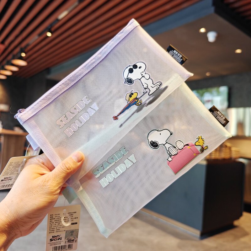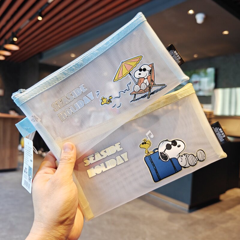 伊藤家正版授权史努比网纱A6笔袋儿童学生用半透明文具袋笔袋铅笔
