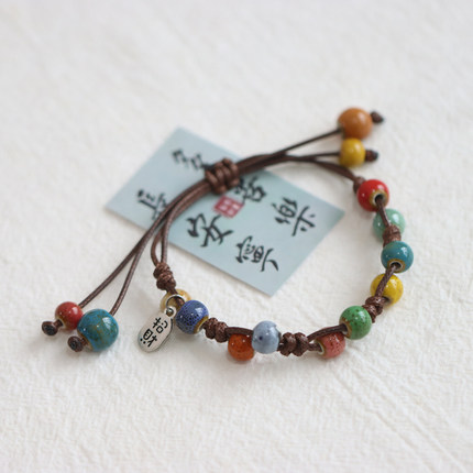 朝颜暮辞 民族风景德镇陶瓷编织手链文艺新中式国风情侣手绳258
