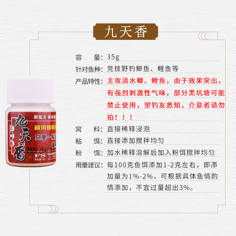 南北鱼饵小药九天香腥味小药鲫鱼饵料鲤鱼钓饵诱食素饵料添加剂