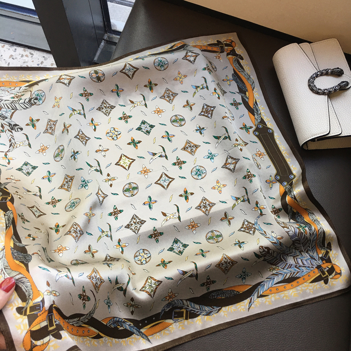 2025春薄丝巾女轻奢感羽毛100%桑蚕丝围巾真丝53cm小方巾百搭领巾