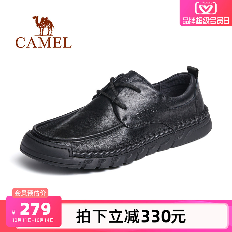 骆驼男鞋2025秋季新款柔软牛皮轻盈防滑经典商务皮鞋男乐福豆豆鞋