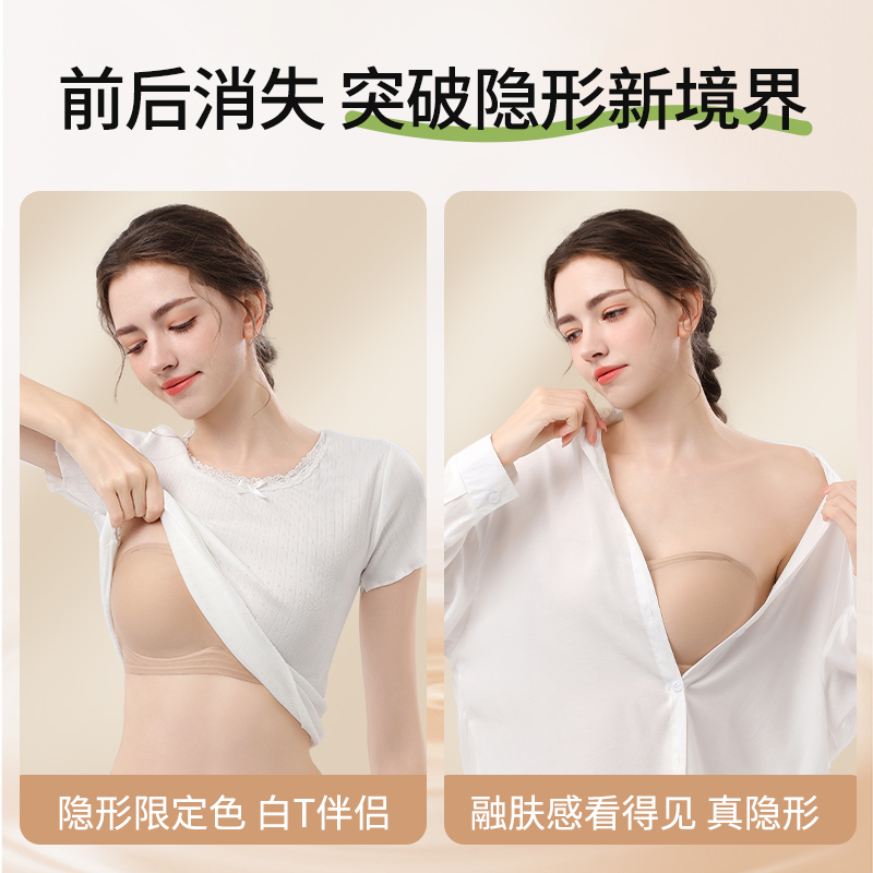 粉底液挂脖抹胸内衣女无痕隐形防走光可外漏细肩带斜肩美背文胸罩