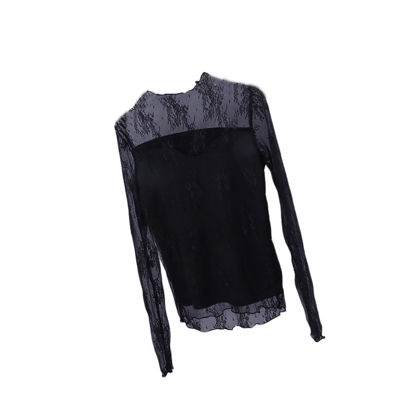 加绒加厚蕾丝长袖网纱洋气内搭女