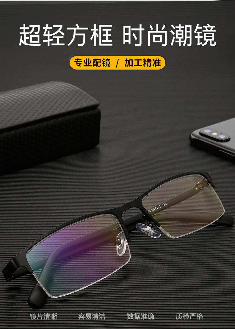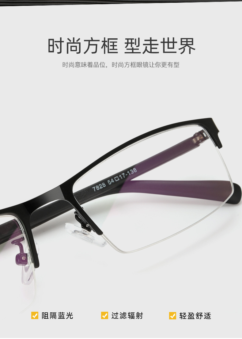时尚休闲眼镜架小方框男半框超轻时尚TR镜腿7828配近视眼镜木之轩