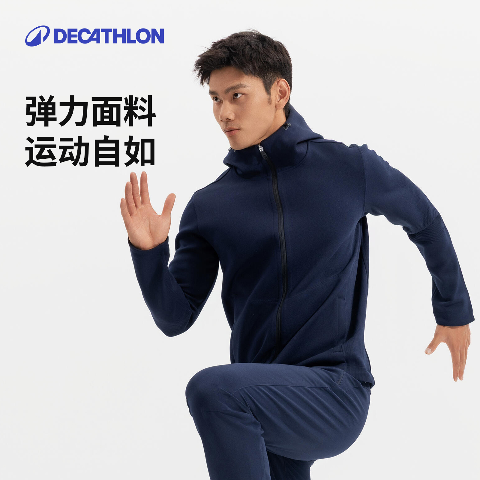 迪卡侬无缝运动外套男春季新款弹力训练夹克速干保暖跑步外套SAX1