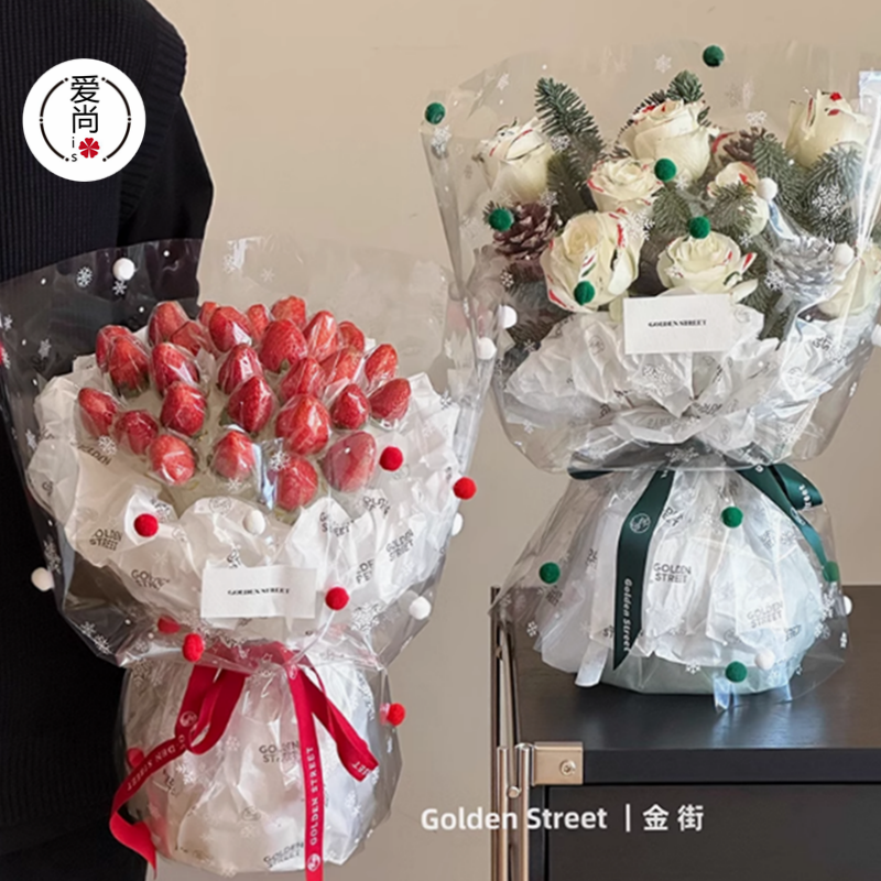 圣诞节雪花玻璃纸防水防尘加厚透明OPP鲜花包装纸花束包花纸材料