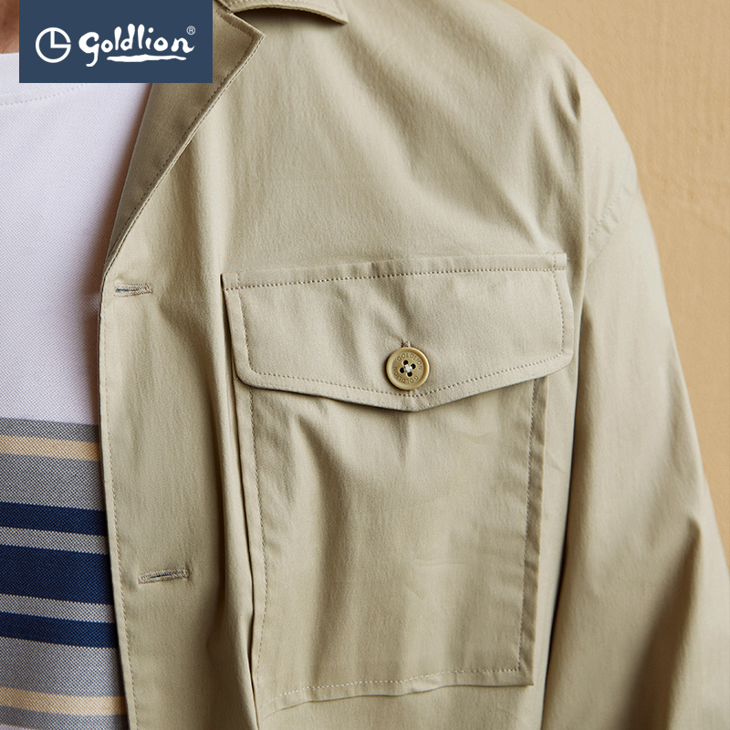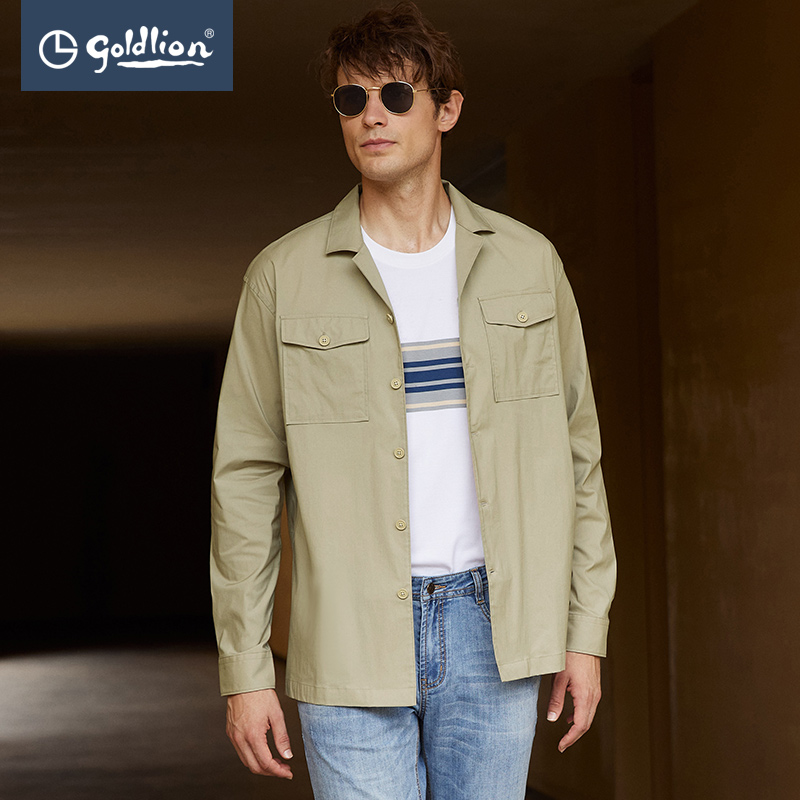 金利来秋季新款男士古巴领双口袋廓型版商务休闲宽松长袖衬衫外套