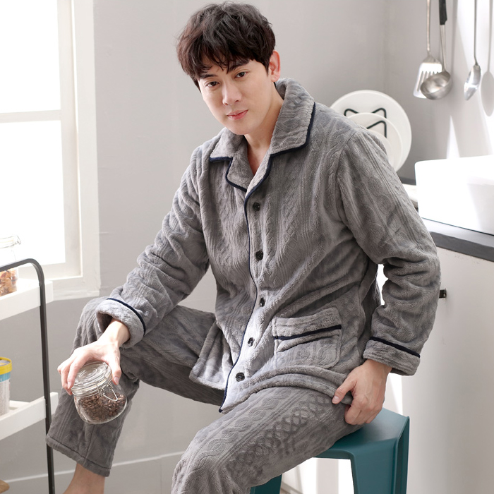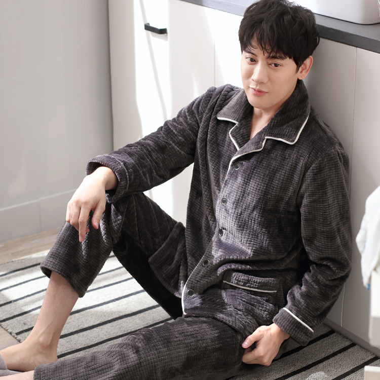 珊瑚绒睡衣男秋冬款加厚加绒法兰绒保暖男士春秋季家居服两件套装