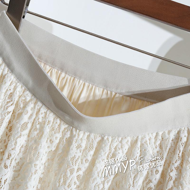 温柔风杏色磨毛蕾丝半身裙女冬季2025新款法式高腰显瘦a字长裙