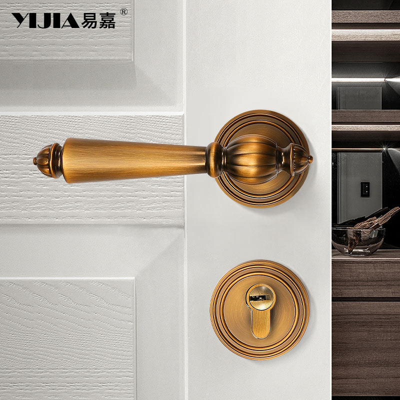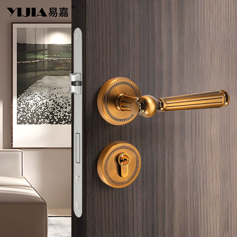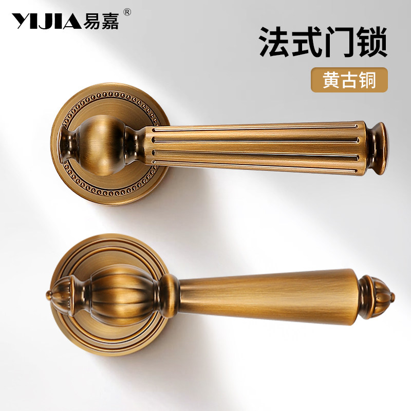 法式复古黄古铜卧室门锁中古风室内卫生间房门锁实木门把手磁吸锁