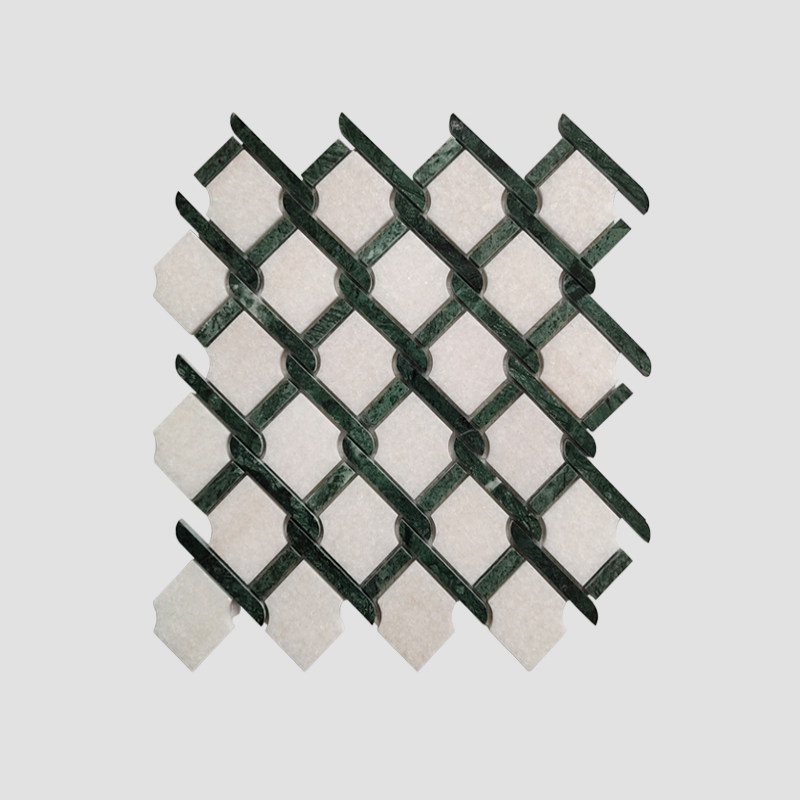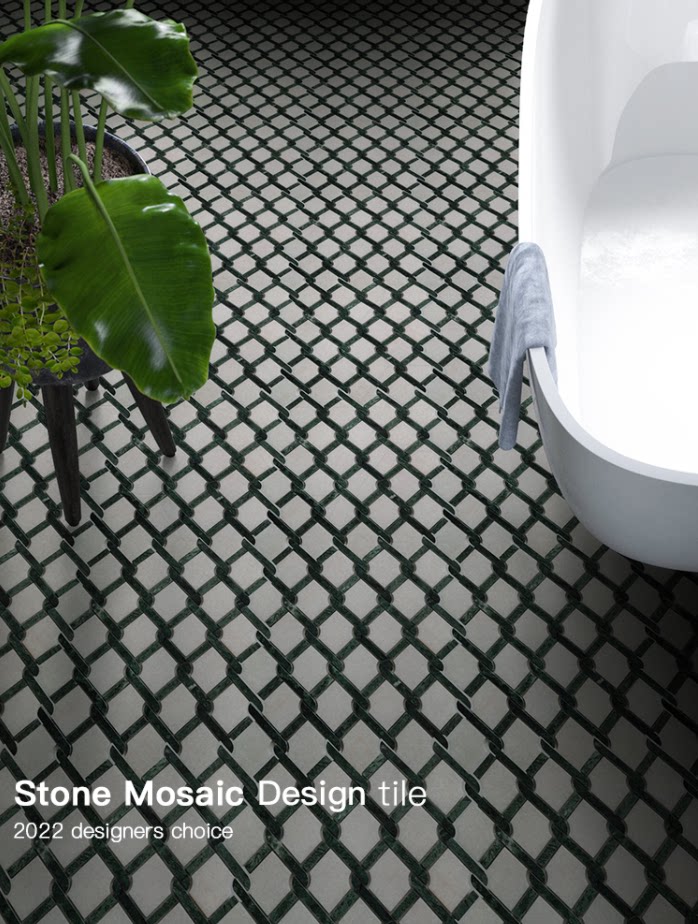 北欧复古墨绿白玉大理石材编织马赛克瓷砖卫生间厨房特色背景墙砖