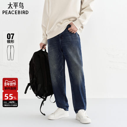 太平鸟男装 美式复古蓝色牛仔裤暖肤棉跳色水洗牛仔长裤潮