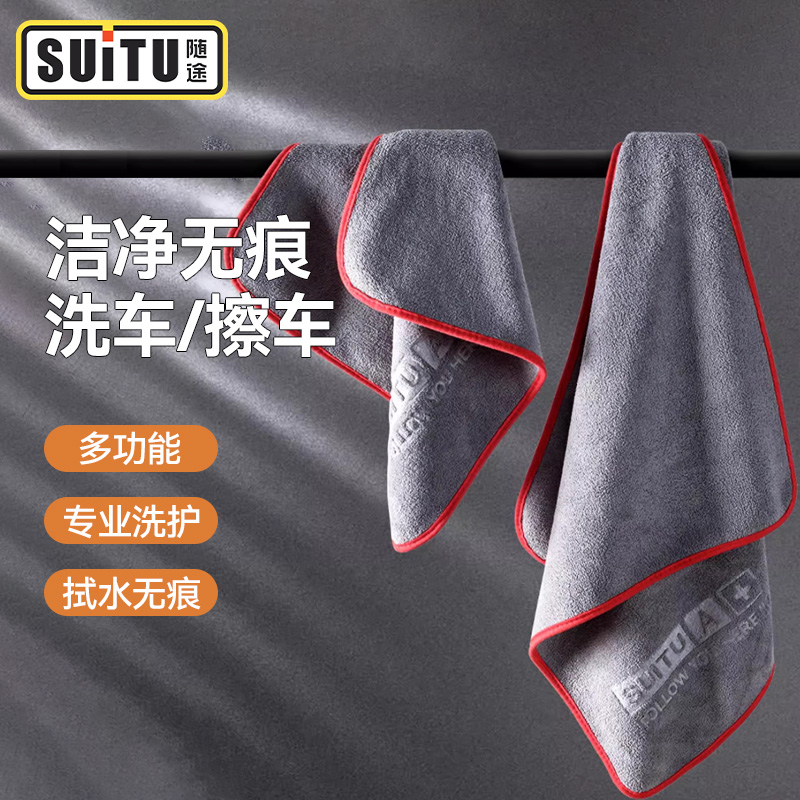 洗车毛巾擦车布专用吸水无痕汽车内饰车内珊瑚抹布不掉毛双面加厚