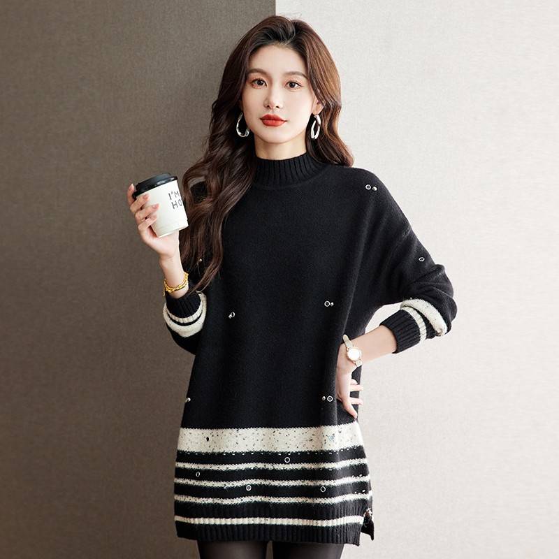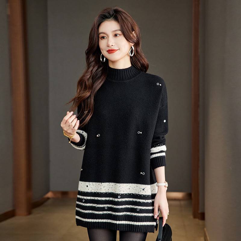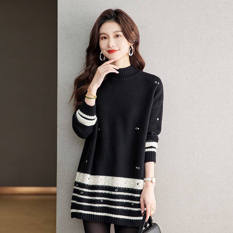 羊毛针织打底连衣裙2024新款女秋冬中长款上衣女遮屁股洋气毛衣裙
