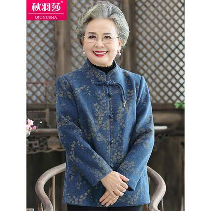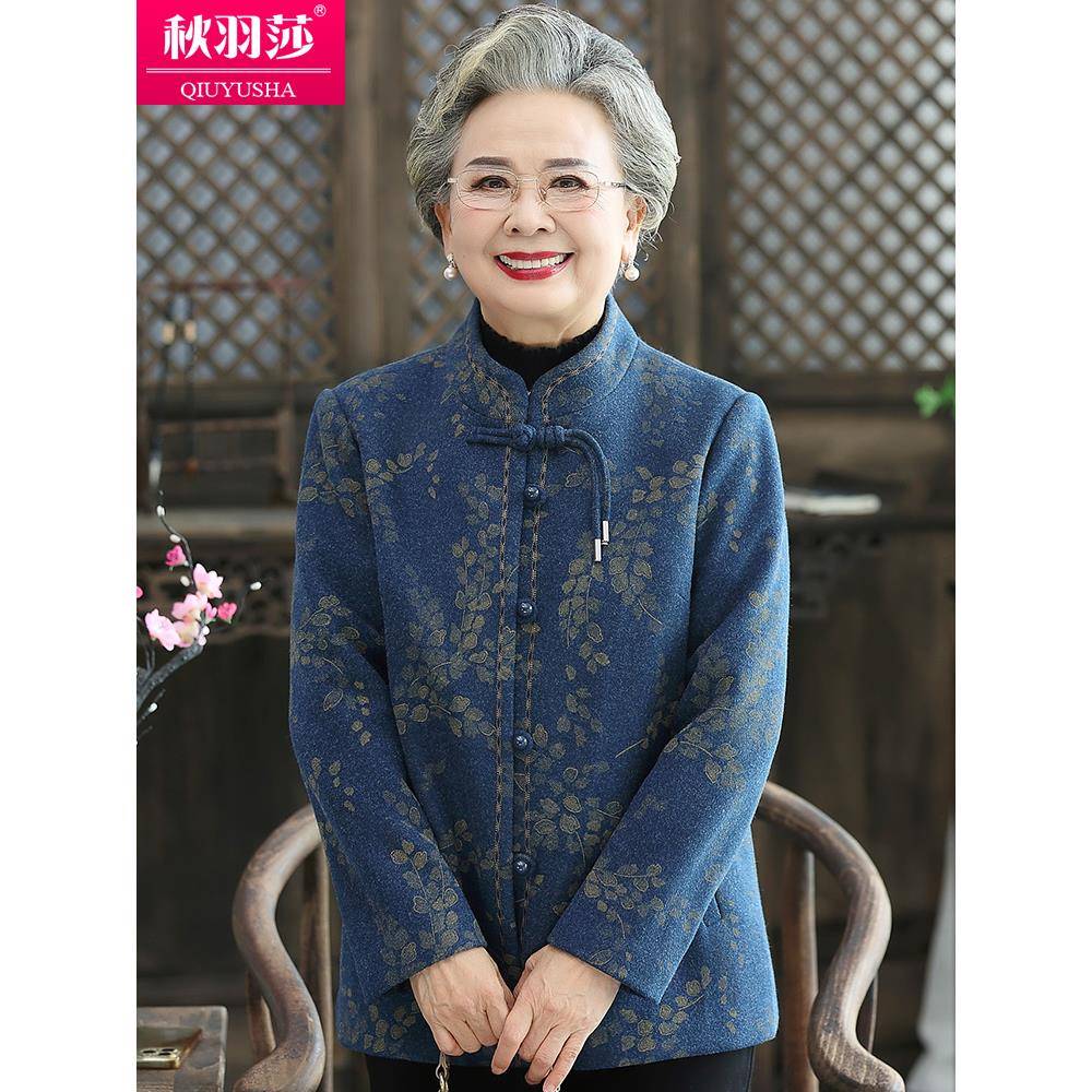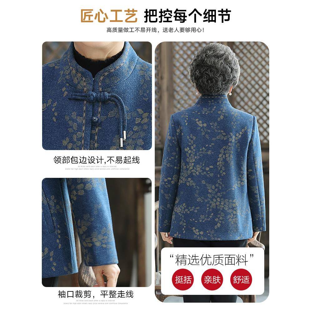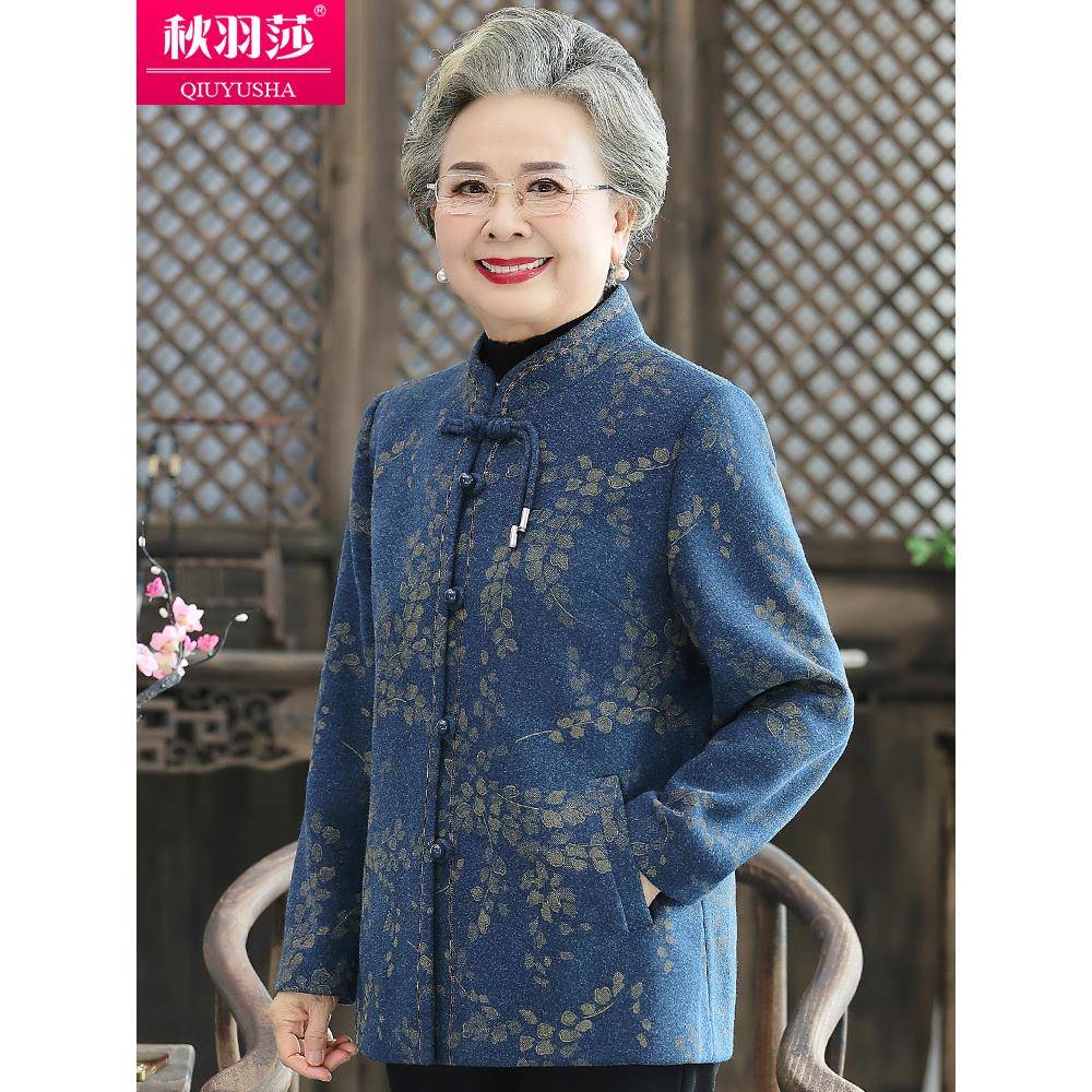 老年人春装女毛呢外套奶奶加厚春季60岁老人太太衣服妈妈呢子外套