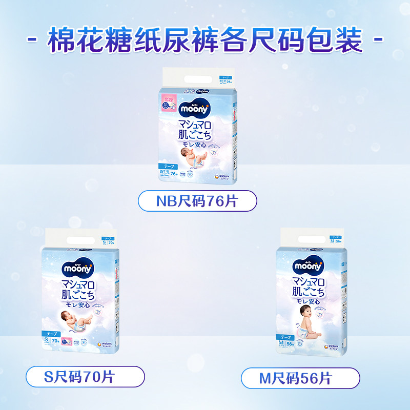 【入门首选】尤妮佳moony畅透宝宝 腰贴纸尿裤 轻薄柔软NB/S/M
