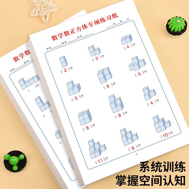 小学生通用数学数正方体专项练习培养想象力空间感逻辑思维能力练习题立体几何图形学习认知一年级作业练习纸