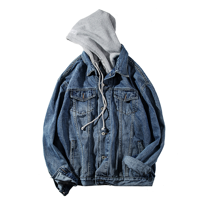 港风男士连帽牛仔外套青少年韩版潮流宽松休闲原宿bf帅气夹克褂子
