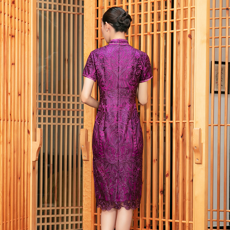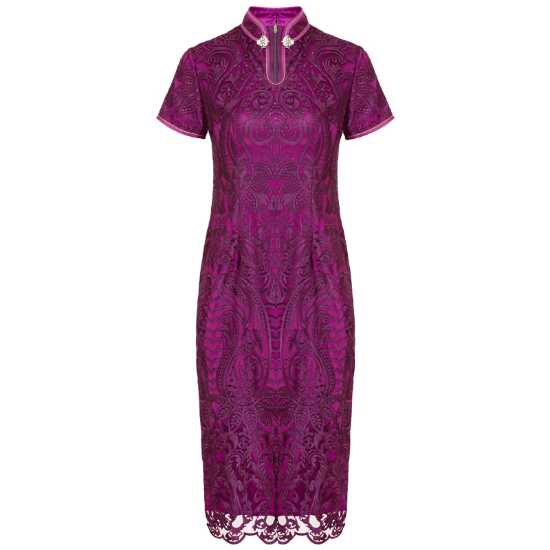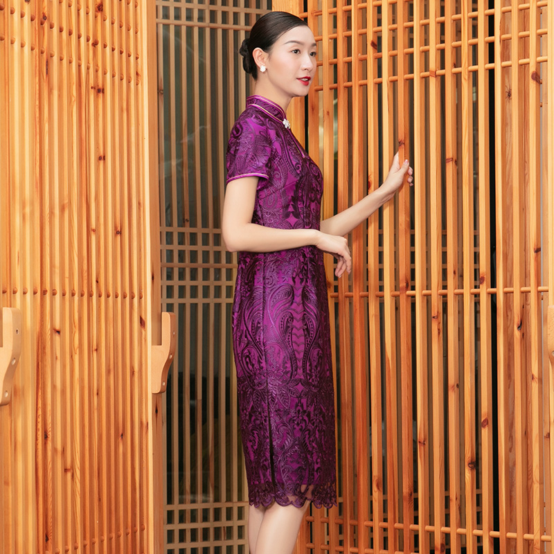 木真了改良妈妈装宴会礼服新品中式蕾丝附纱中长修身短袖旗袍612