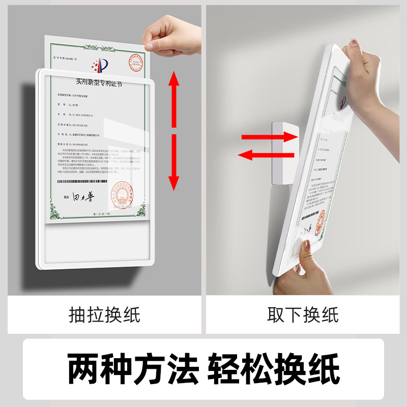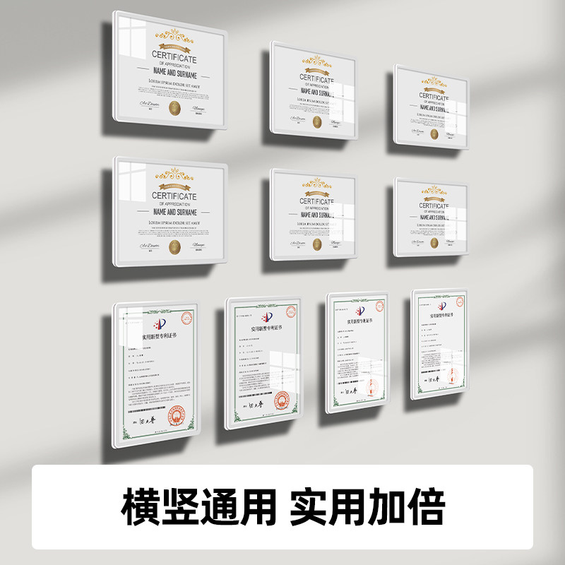 专利证书框免打孔商标注册证框架a4亚克力相框奖状证件收纳展示墙