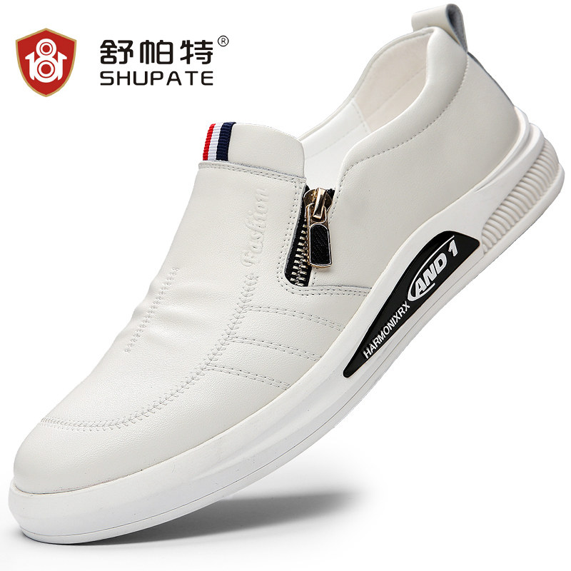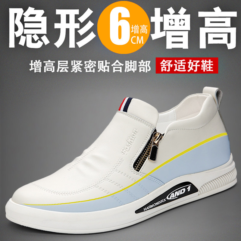 男鞋套脚真皮旅游鞋内增高小白鞋飞行员休闲鞋英伦百搭潮流皮鞋男