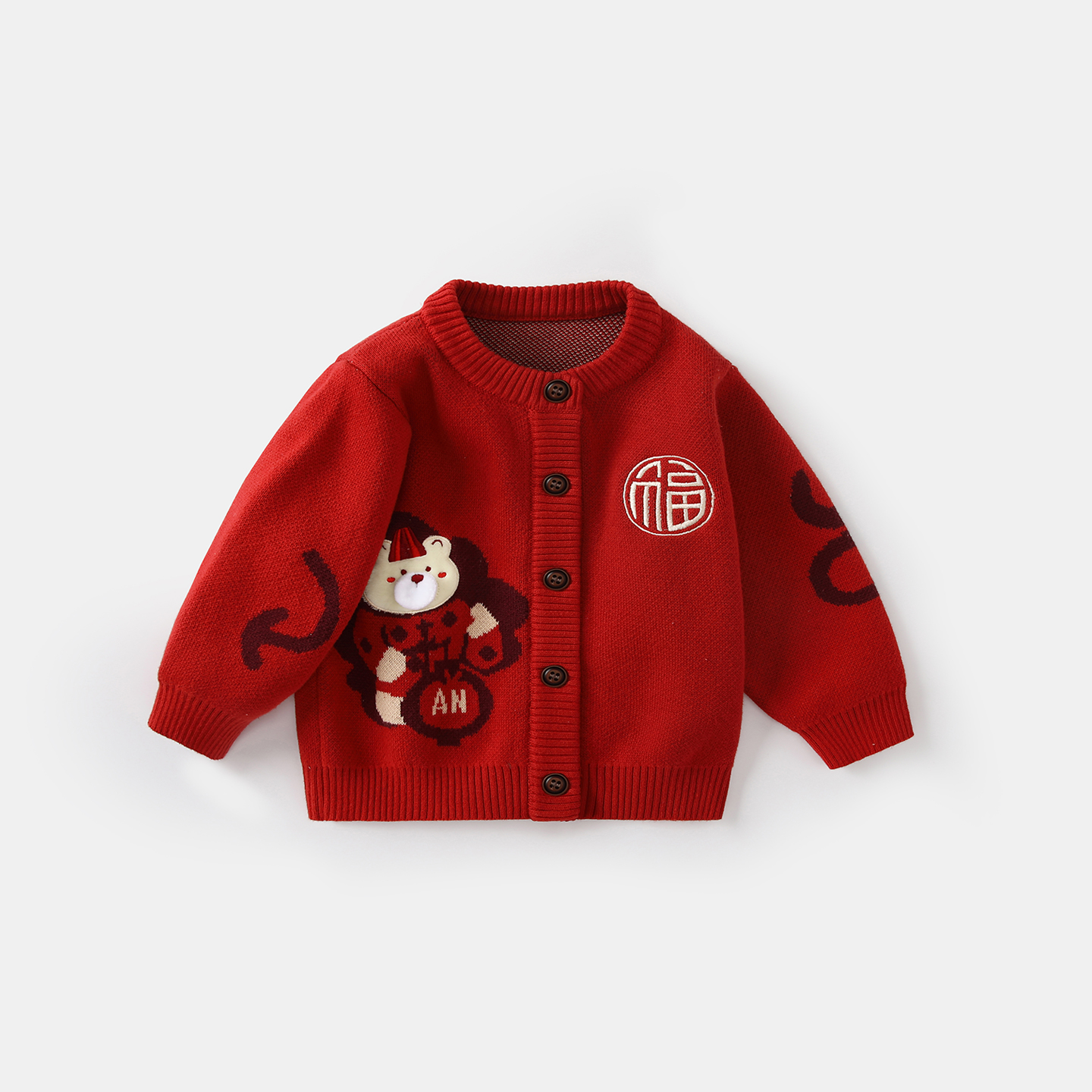 波步婴儿红色毛衣三件套男宝宝套装秋冬新款衣服男童周岁针织开衫