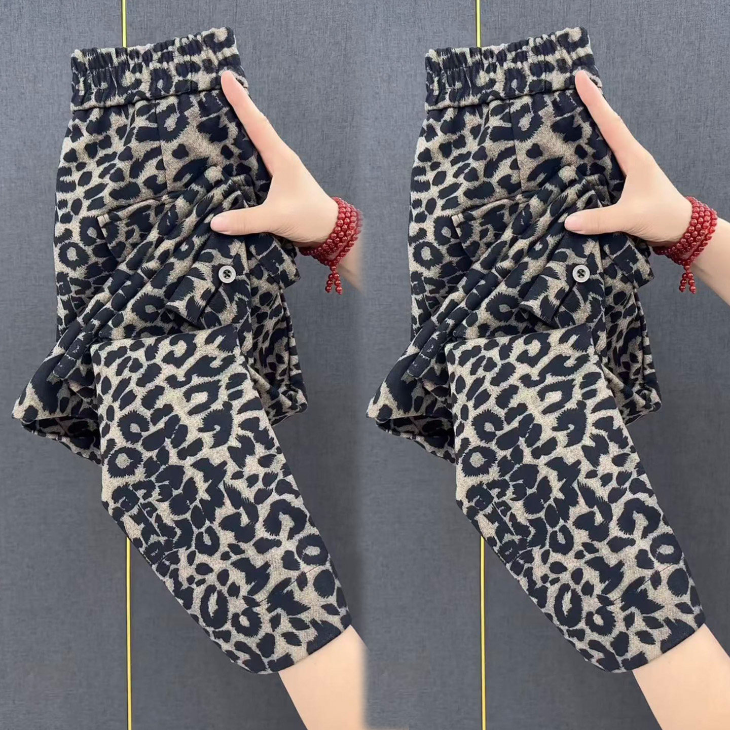 秋冬新款豹纹加厚奶奶萝卜九分裤