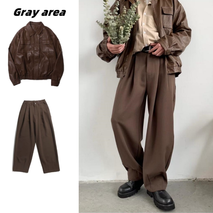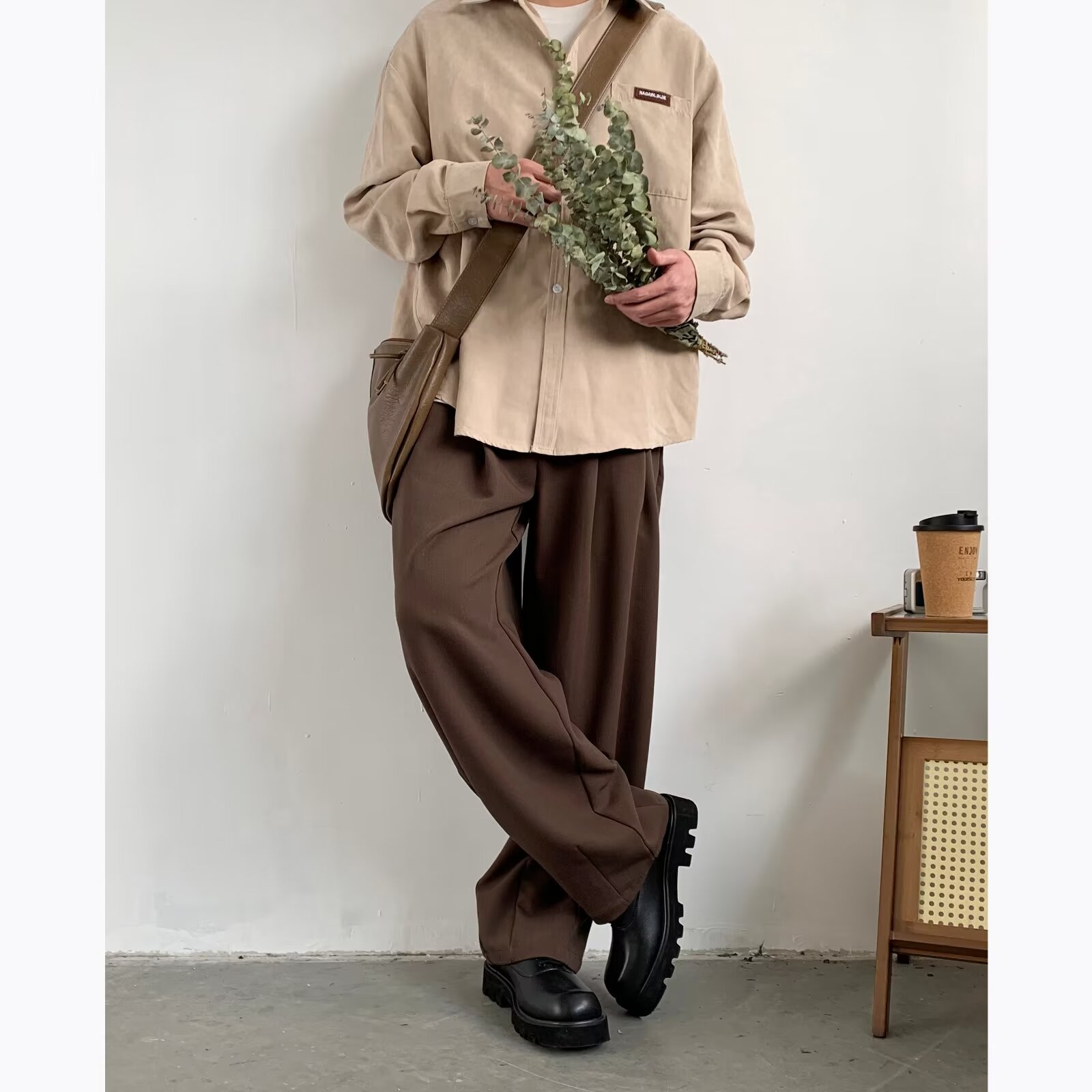 春秋日系套装复古纯色西裤男女款免烫宽松港风休闲松紧腰西装长裤