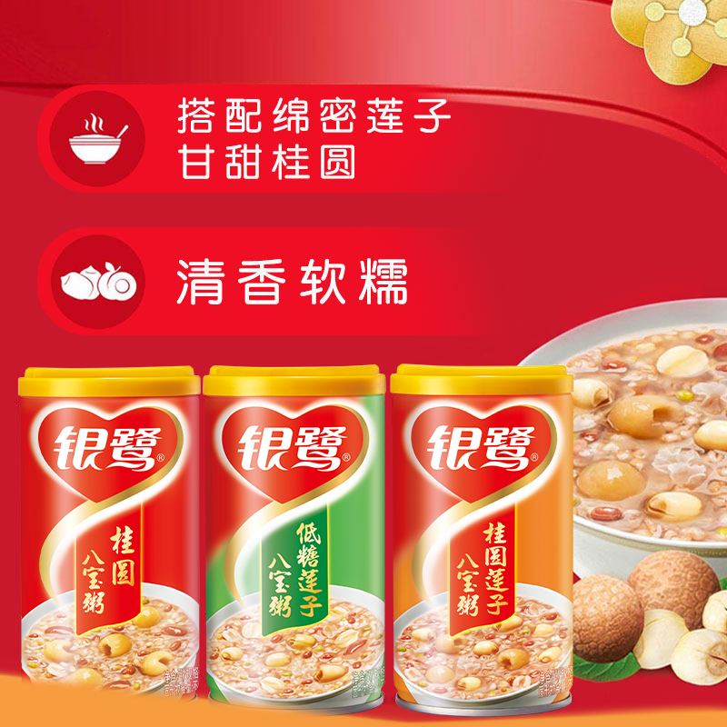 银鹭桂圆莲子八宝粥低糖360g12罐整箱装营养6罐散装米五谷杂粮