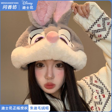迪士尼正版朱迪兔子毛绒帽女冬季