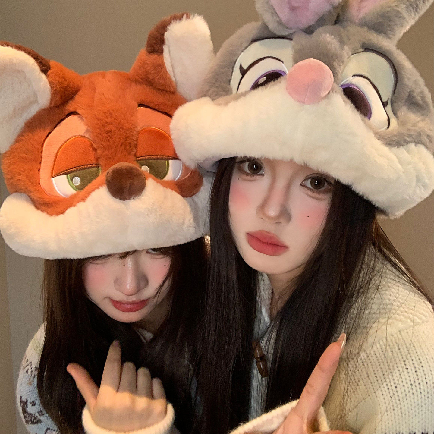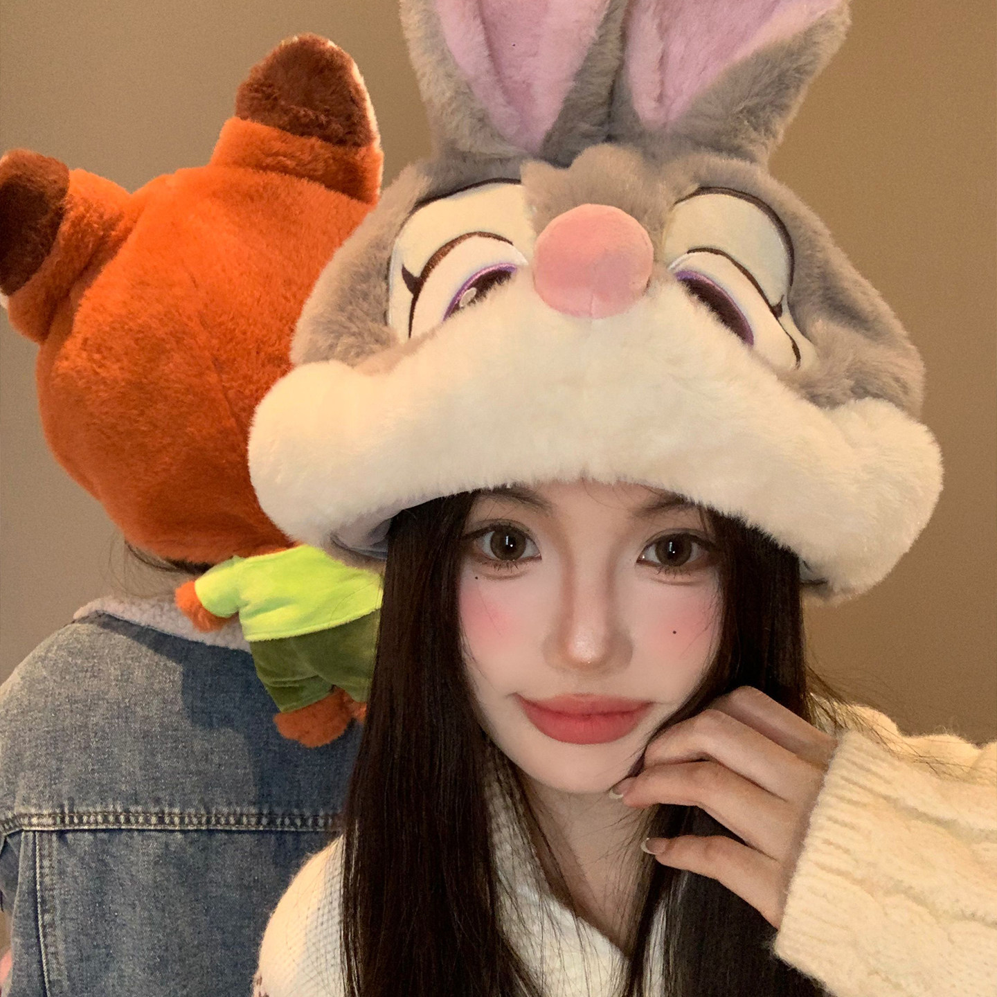 迪士尼正版朱迪兔子毛绒帽女冬季保暖显脸小可爱防寒套头雷锋帽子