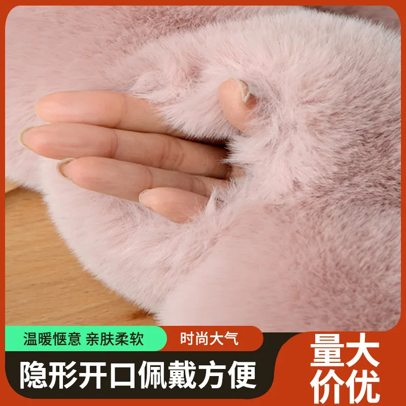 仿獭兔毛加厚保暖护颈围脖女秋冬季时尚简约百搭加厚保暖交叉围巾