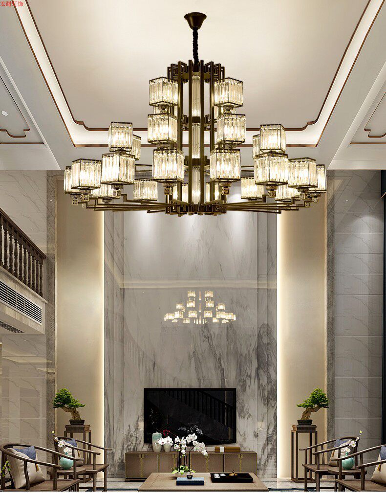 轻奢别墅多层水晶大吊灯简约