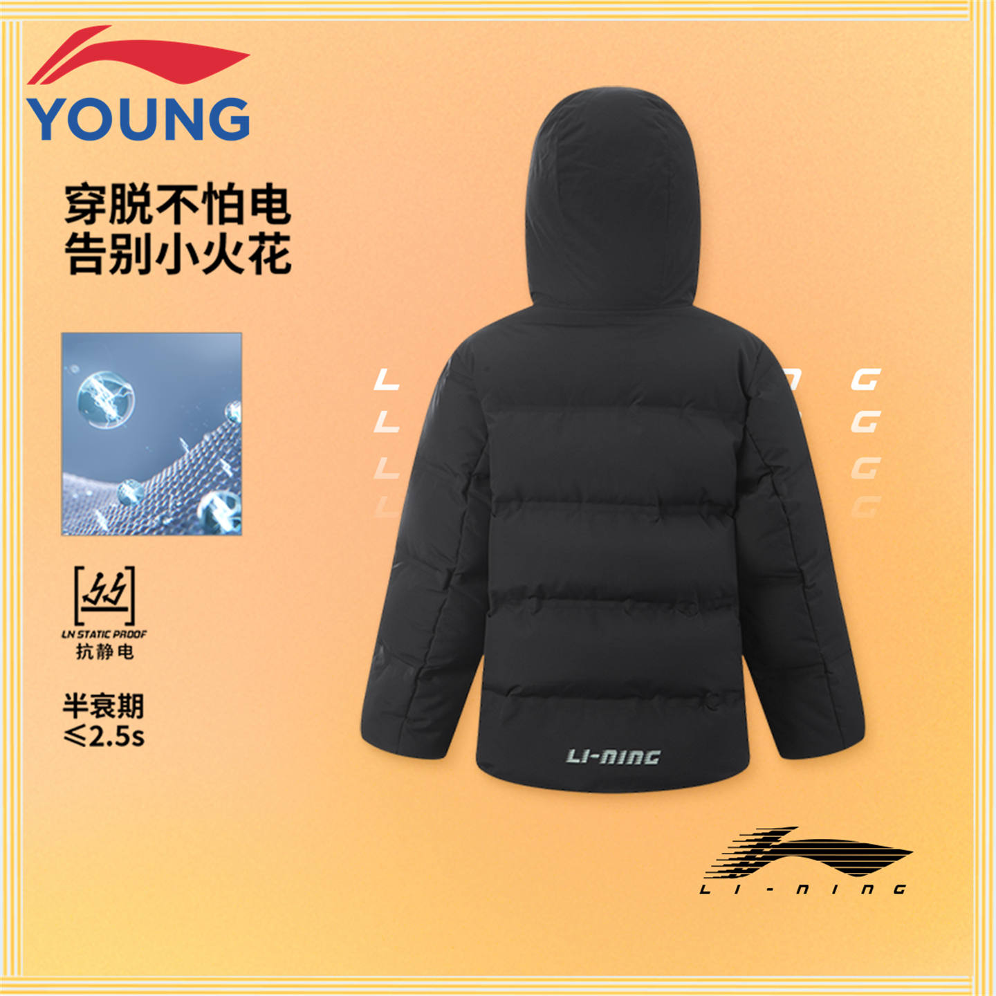 李宁童装儿童轻薄羽绒服短款男童青少年2025冬季新款保暖连帽外套