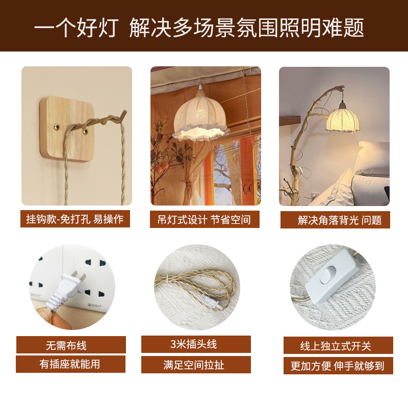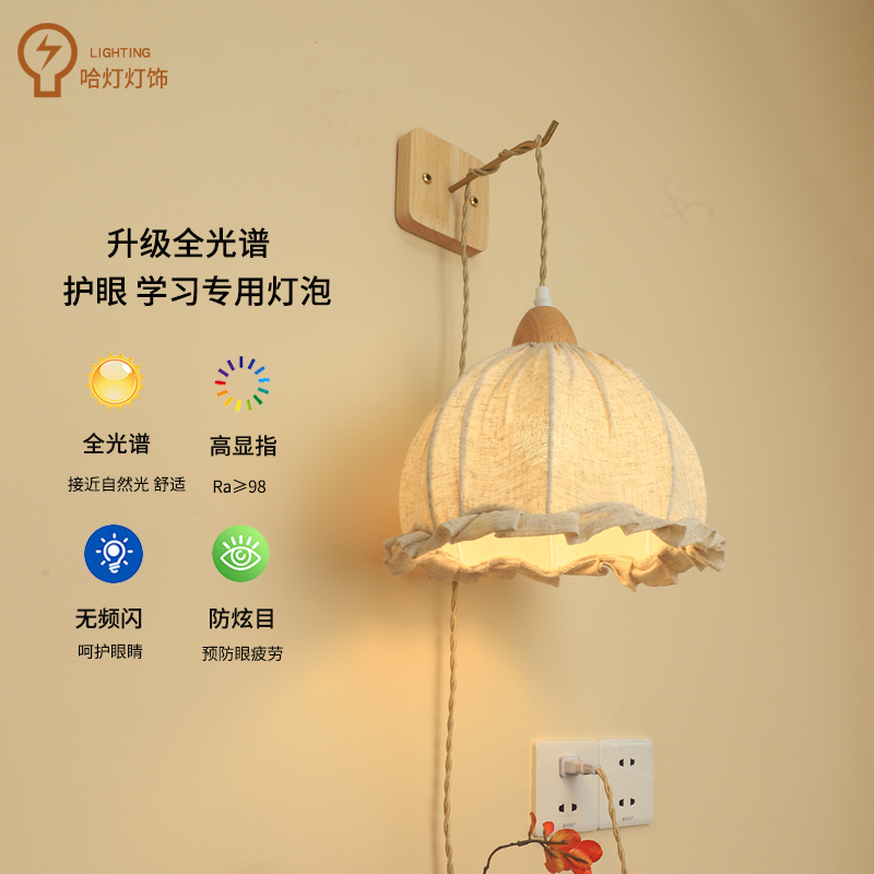 插电免布线壁灯日式复古卧室床头灯墙上灯北欧免打孔挂灯吊灯改造