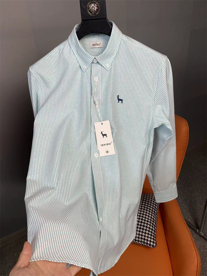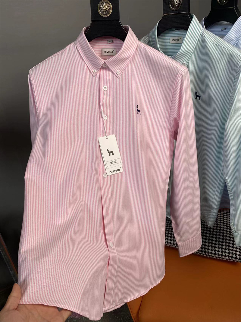 精致刺绣标!全棉牛津纺!春季男士时尚条纹休闲百搭长袖衬衫衬衣