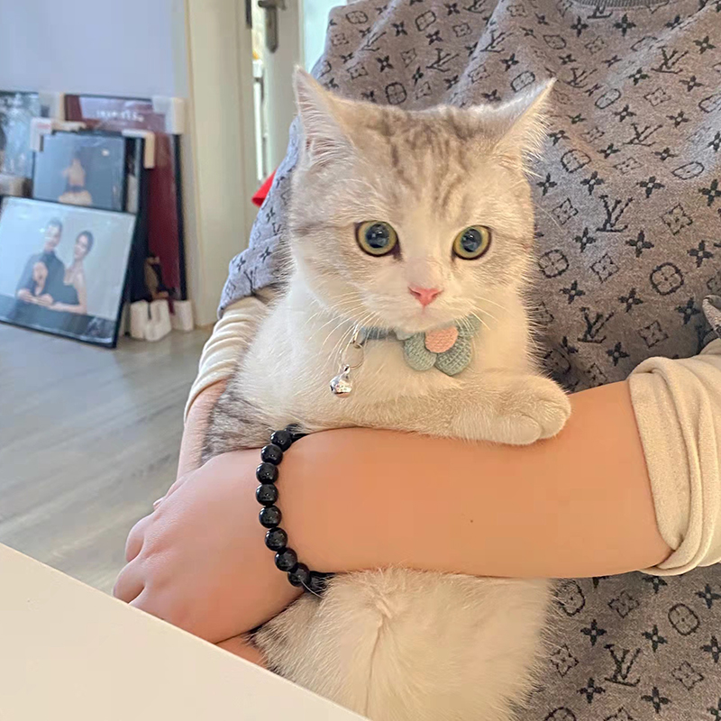 可爱猫咪狗狗铃铛项圈幼犬幼兔猫狗通用蓝白英短美花朵颈链狗猫绳