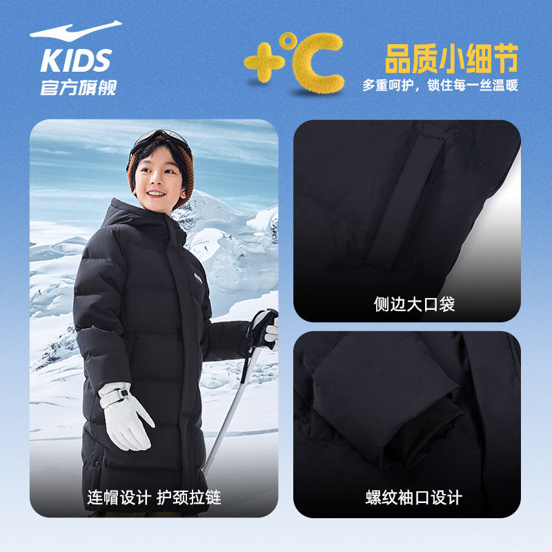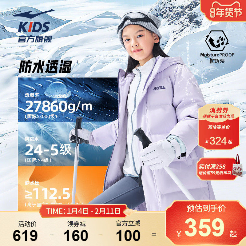 鸿星尔克童装儿童羽绒服冬季女童中长款防寒保暖防泼水冬装外套
