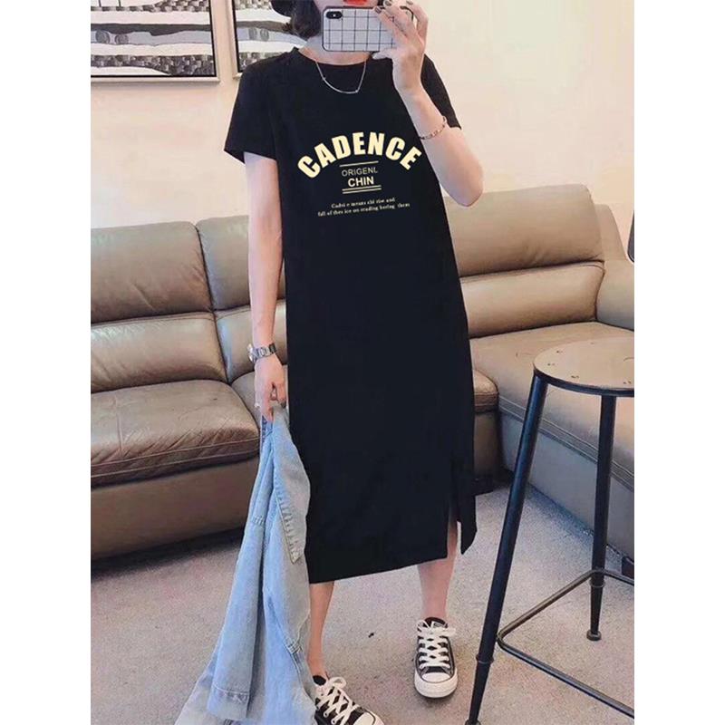 大码短袖连衣裙女2025新款夏季韩版宽松显瘦中长款开叉t恤裙ins潮